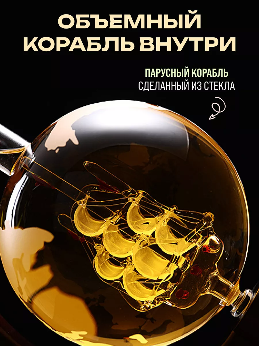 Графин глобус с кораблем для виски декантер подарочный - это уникальный и оригинальный подарок для мужчин, который станет прекрасным дополнением к интерьеру кухни или дома. Этот стильный и красивый аксессуар подходит для любого мужчины, будь то отец, парень, начальник или друг.