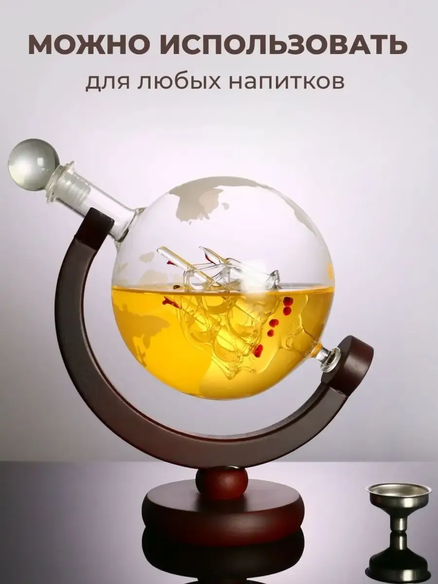 Этот графин глобус с кораблем для виски декантер подарочный также может быть использован как декоративный элемент в интерьере. Он прекрасно смотрится на столе, на полке или на стене, добавляя нотку стиля и изысканности в ваш дом.