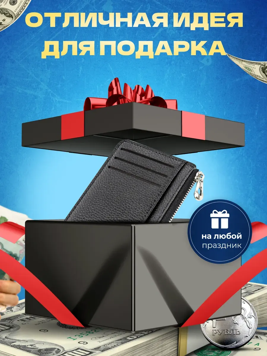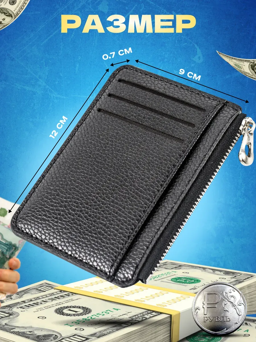 Удобный и стильный аксессуар - визитница - имеет 8 отделений под карты и средний отдел на молнии для хранения монет, наличных купюр, визиток, чеков и др. Карты легко достаются и не выпадают из визитницы для пластиковых карт. Картхолдер позволяет складывать водительское удостоверение, кредитные и дебетовые карты.