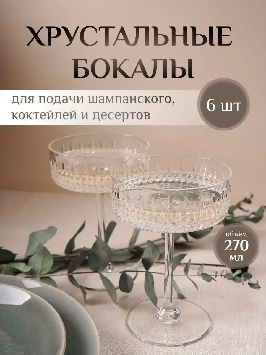 набор хрустальных креманки бокал для шампанского подарок 6шт