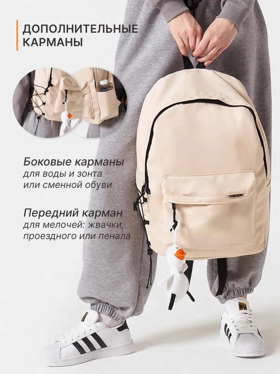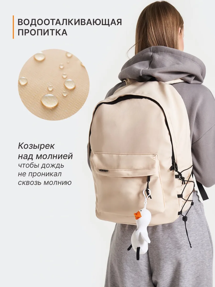Городской рюкзак. Вместе с рюкзаком идет подарок игрушка брелок ввиде гуся в подарок. Из-за особенности производства и материала водонепроницаемого подклада может быть у изделия запах, но он через некоторое время выветривается.. Модель унисекс с влагозащитой. Модный, молодежный, стильный! Удобная и практичная модель повседневной носки для работы или школы. Лямки рюкзака мягкие что позволит носить его не перегружая плечи и позвоночник. В основном отделении максимально эффективно распределено пространство, для размещения личных вещей: есть отделение для ноутбука, основное отделение и даже потайной карман на спинке. А по бокам карманы для воды или зонта. Благодаря универсальному размеру рюкзак отлично подойдет как для взрослого, так и для ребенка. Если вы ищете подарок, неважно для мальчика или для девочки, то обязательно обратите внимание на данный аксессуар. Переходите в профиль нашего магазина, там представлено больше оригинальных моделей нашего бренда!