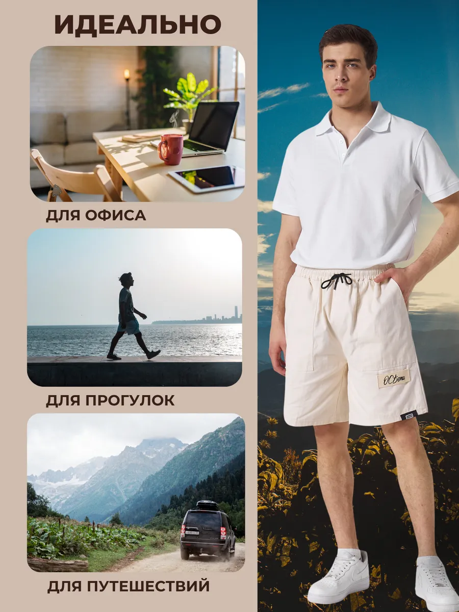 Шорты мужские бежевые в японском стиле, идеально подойдут для повседневной носки и для занятия спортом